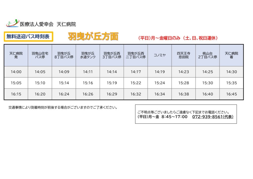 羽曳が丘方面 時刻表・ルート