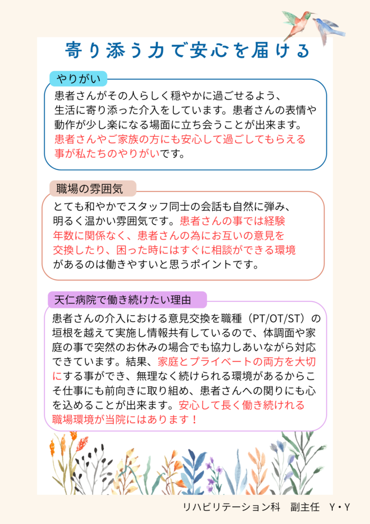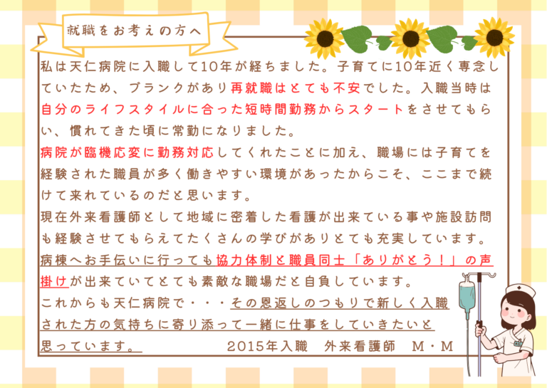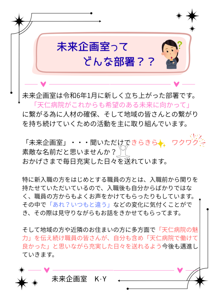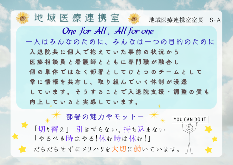現場で働く職員が、病院や仲間に対しての想いを綴っています。